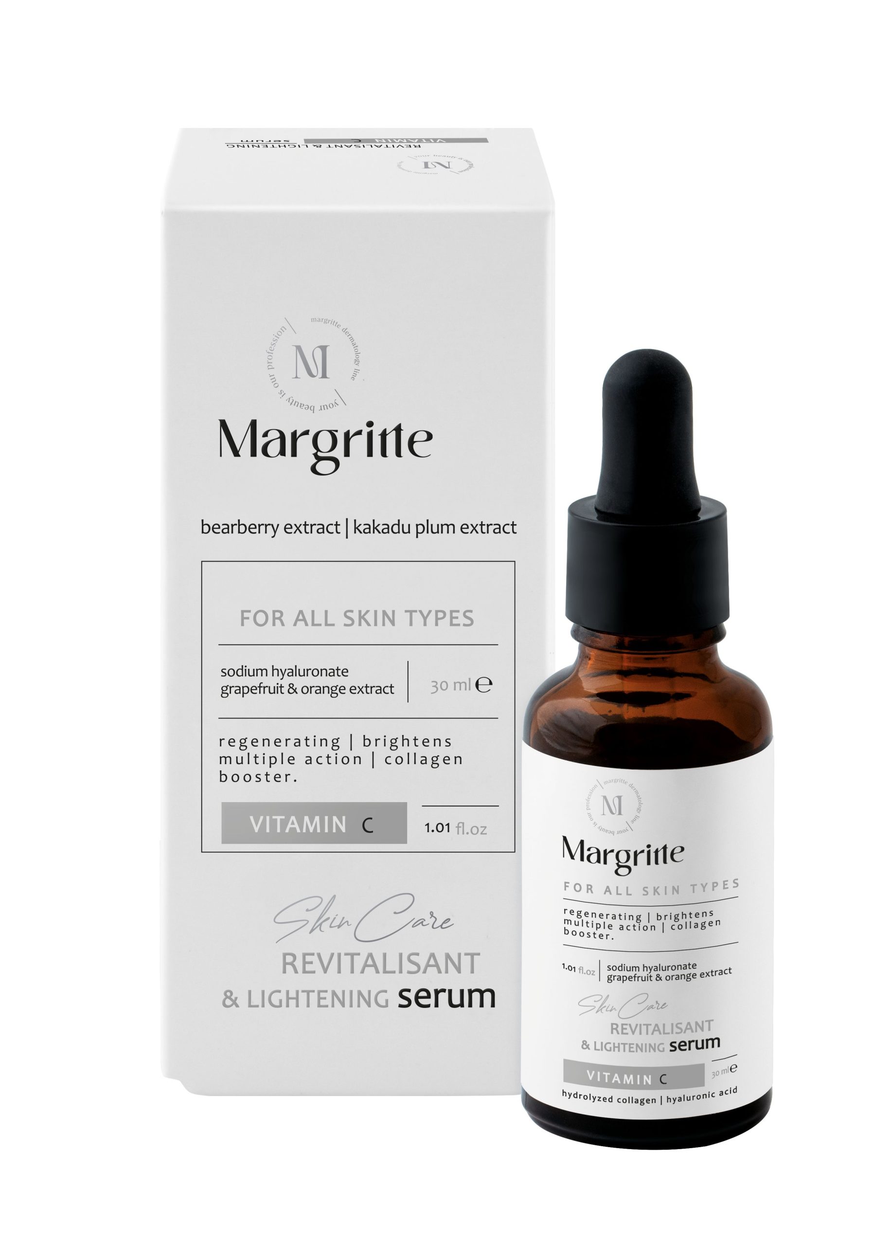 سرم روشن کننده و احیا کننده ویتامین سی مارگریت، موثر در رفع لک های پوست nروشن سازی و کاهش تولید ملانین پوست با بکارگیری سدیم آسکوربیل فسفات nنفوذ ترکیبات فعال در عمق لایه های پوست به کمک تکنولوژی لیپوزومال nسرم روشن کننده و احیا کننده ویتامین سی مارگریت، دارای خاصیت لایه برداری nکاهش لک ها و یکنواختی رنگ پوست با بهره گیری از عصاره بیربری nآنتی اکسیدان و تقویت ساختار پوست به واسطه داشتن کاکادوپلام nسرم روشن کننده و احیا کننده ویتامین سی مارگریت، جوانساز پوست nکارآمد در کاهش ترشح هورمون MSH-a و بهبود لک های پوست nایده آل برای انواع پوستnnسرم روشن کننده و احیا کننده ویتامین سی مارگریت، محصولی منحصر به فرد است که با ترکیبات گیاهی و قدرتمند خود، به شما کمک میکند تا پوستتان را روشن تر و جوان تر کنید. این سرم با بهرهگیری از تکنولوژی لیپوزومال، به نفوذ ترکیبات فعال در عمق لایه های پوست کمک می کند و باعث بهبود سریع لک ها، روشن شدن رنگ پوست و جلوگیری از پیری زودرس می شود. مناسب برای انواع پوست و قابل استفاده برای صورت و گردن، این سرم بهترین راه حل برای افرادی است که به دنبال یک محصول با اثربخشی چندگانه و طبیعی هستند. nnسدیم آسکوربیل فسفات موجود در سرم روشن کننده و احیا کننده ویتامین سی مارگریت، یکی از مشتقات پایدار ویتامین سی است که به دلیل ساختار شیمیایی مقاوم تری که در برابر اکسیداسیون دارد، برای مراقبت از پوست ایده آل است. nnاین ترکیب با کاهش تولید ملانین از طریق مهار آنزیم تیروزیناز به روشن شدن پوست کمک می کند و علاوه بر آن، خاصیت آنتی اکسیدانی قوی دارد که می تواند پوست را از آسیب های ناشی از رادیکال های آزاد محافظت کند. همچنین با تحریک تولید کلاژن، باعث بهبود بافت پوست و کاهش چین و چروک های سطحی میشود. تحقیقات نشان می دهد که استفاده منظم از این ترکیب، باعث کاهش لکه های پوستی و افزایش شفافیت پوست می شود. nnکاکادوپلام به کار رفته در سرم روشن کننده و احیا کننده ویتامین سی مارگریت یکی از غنی ترین منابع طبیعی ویتامین C است که مقدار آن به مراتب بیشتر از پرتقال است. این ویتامین نقش مهمی در سنتز کلاژن ایفا می کند که برای تقویت ساختار پوست و پیشگیری از پیری زودرس ضروری است. nnعلاوه بر این، خاصیت ضد اکسیدانی آن می تواند از پوست در برابر آسیب های محیطی مانند آلودگی هوا و نور خورشید محافظت کند. مطالعات نشان می دهند که ویتامین C موجود در عصاره کاکادوپلام به طور قابل توجهی به کاهش علائم پیری، افزایش درخشندگی و شفافیت پوست کمک می کند. nnعصاره بیربری موجود در سرم روشن کننده و احیا کننده ویتامین سی مارگریت، شامل ترکیب فعالی به نام آربوتین است که به عنوان یک روشن کننده طبیعی و ایمن شناخته می شود. آربوتین با مهار آنزیم تیروزیناز تولید ملانین را کاهش می دهد و به همین دلیل به روشن شدن پوست و کاهش لکه های تیره کمک می کند. nnبرخلاف هیدروکینون که ممکن است عوارض جانبی داشته باشد، آربوتین یک جایگزین طبیعی و ملایم تر است که بدون تحریک پوست، اثرات روشن کنندگی دارد. مطالعات نشان می دهد که استفاده مداوم از محصولات حاوی آربوتین می تواند نتایج مطلوبی در کاهش لک ها و یکنواختی رنگ پوست داشته باشد. nnسرم روشن کننده و احیا کننده ویتامین سی مارگریت با استفاده از ترکیبات طبیعی و موثر خود، نه تنها به روشن کنندگی پوست کمک می کند، بلکه با اثرات آنتی اکسیدانی و ضدپیری خود، از پوست در برابر آسیب های محیطی و علائم پیری محافظت می کند. این سرم برای انواع پوست مناسب است و می تواند به عنوان یک راهکار جامع برای مراقبت از پوست استفاده شود. nnnnمزایای سرم روشن کننده و احیا کننده ویتامین سی مارگریت nممانعت از بروز نشانه های پیری زودرس پوست به واسطه داشتن ترکیبات محرک تولید کلاژن nnجذب سریع و نفوذ عمیق به لایه های زیرین پوست با بهره مندی از فرمولاسیون لیپوزومال nnکارآمد در کاهش لک های تیره و یکنواخت سازی رنگ پوست nnمحافظت از پوست در برابر آسیب های اکسیداتی
